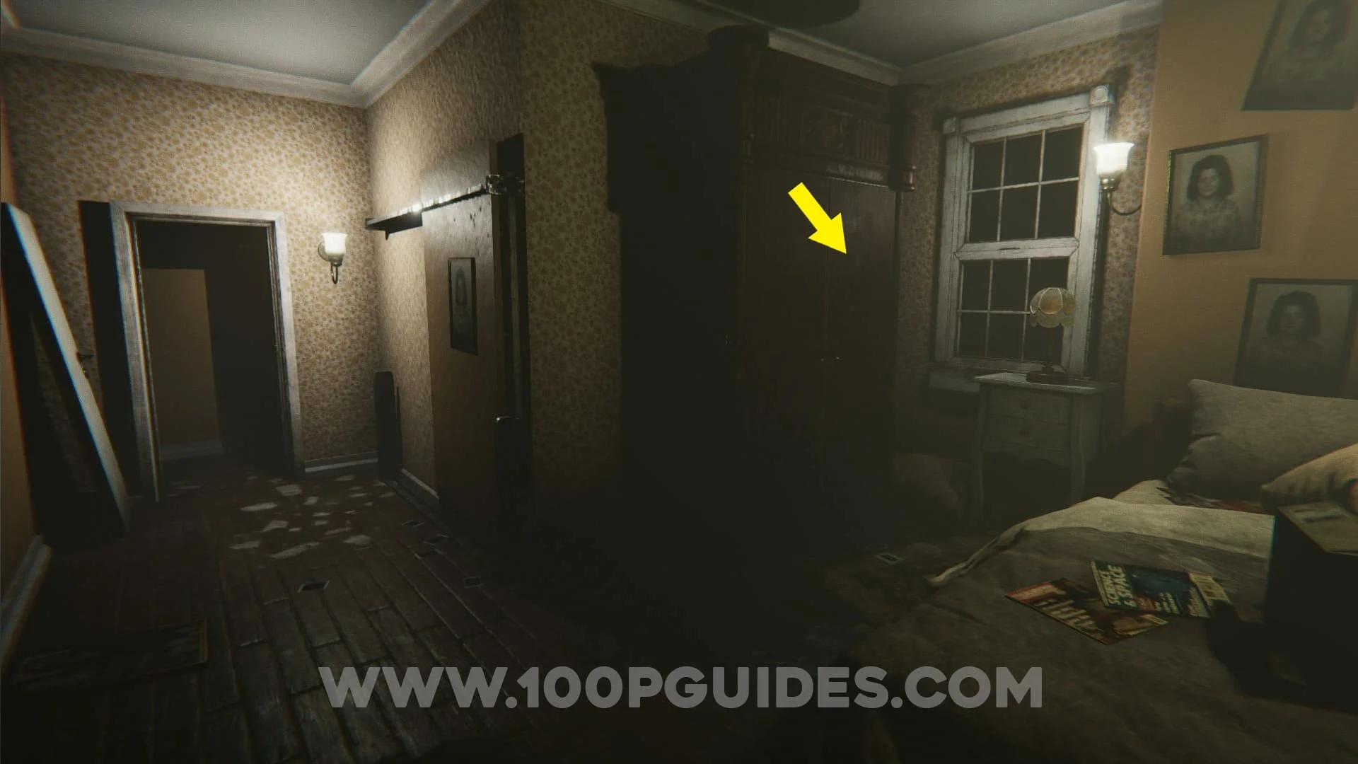 Now go to the grandparent's room (this is the first door on the left in the hall after you exit the dining room). As soon as you enter the room take a photo of the wall behind the door to get another red collectible. Then open the wardrobe on the left side of the bed to pick up the Old Slides.