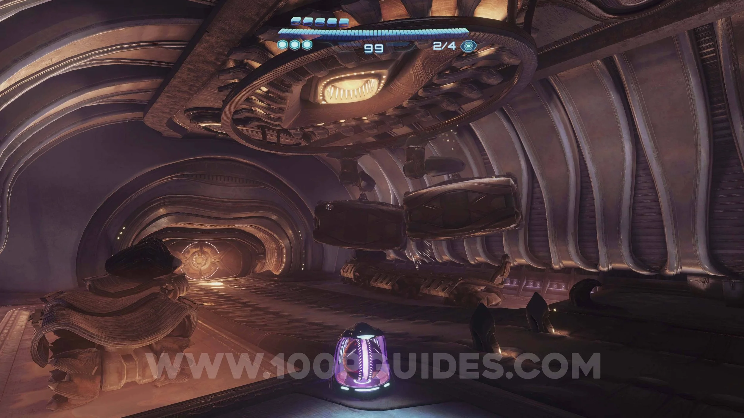 Missile Expansion #32. On Level 1, go around the side of the main elevator and use the spider ball to climb around the structure to get to the upgrade.