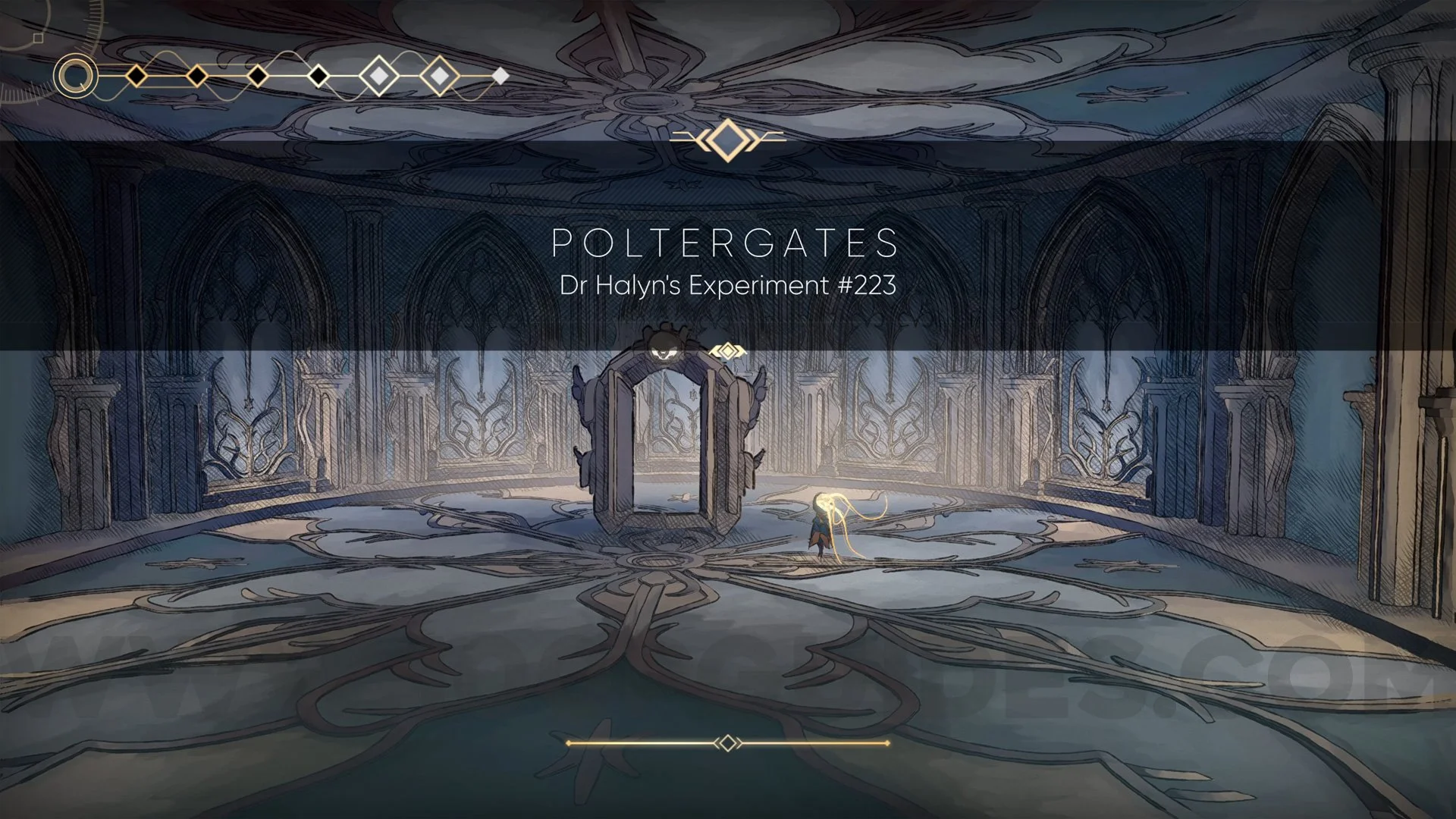 Poltergates - Dr Halyn’s Experiment #233. Go under the stairs and proceed forward to the lowest part of the area. Once there, enter the door on the left.