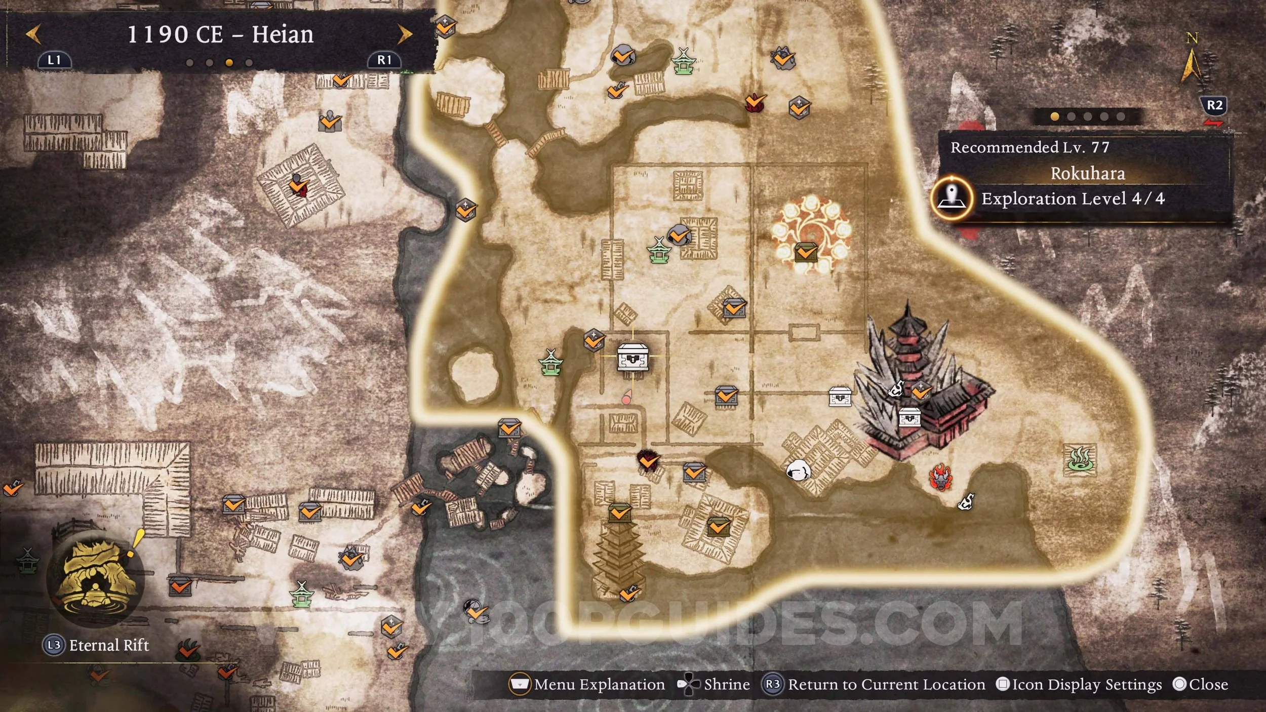 Purify Yokai Realm: Spirit: Behind the Nurikabe in the Futamata region. Use any Neutral gesture (yellow).