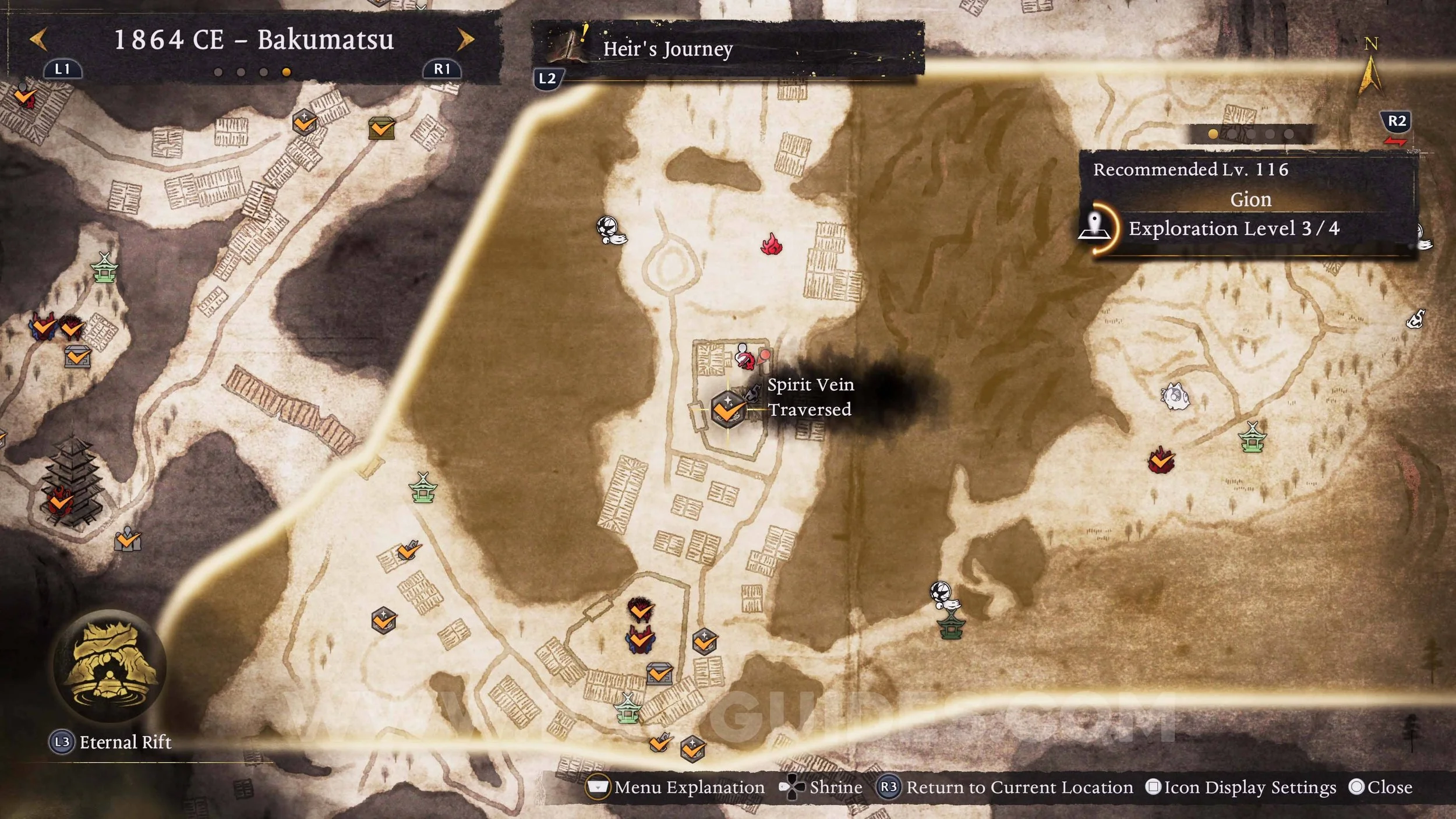 Ninja’s Equilibrium. Found on a rooftop in the Gion region just south of the Gojo Bridge shrine. Approach the building from the south and use the Spirit Vein to reach it.