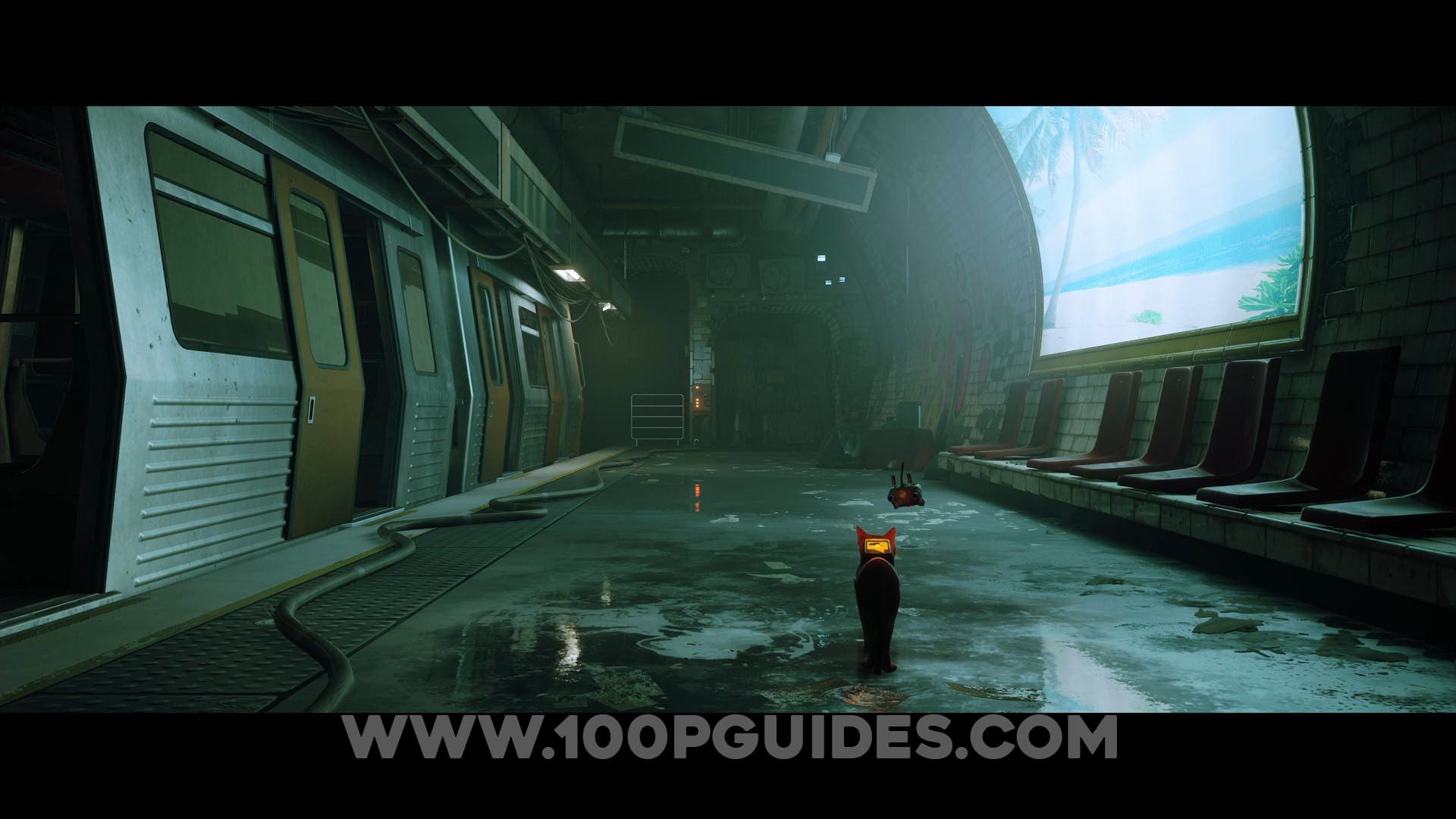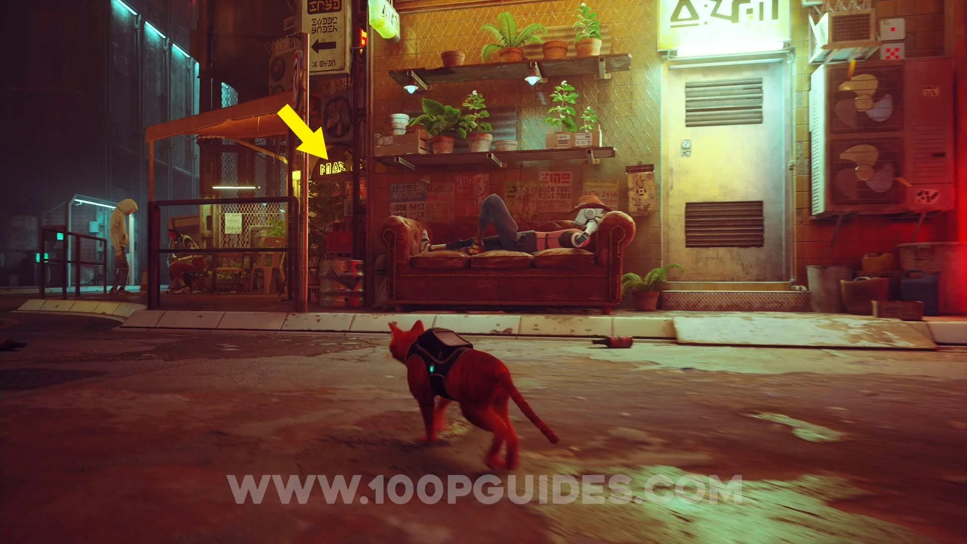Scratch Point #1. After leaving the building where you got the previous collectibles, you will go up 4 little stairs in an area with multiple robots. After going up the stairs go to your left and go around to the back of the elevator. Here you will find a scratch point and a robot.