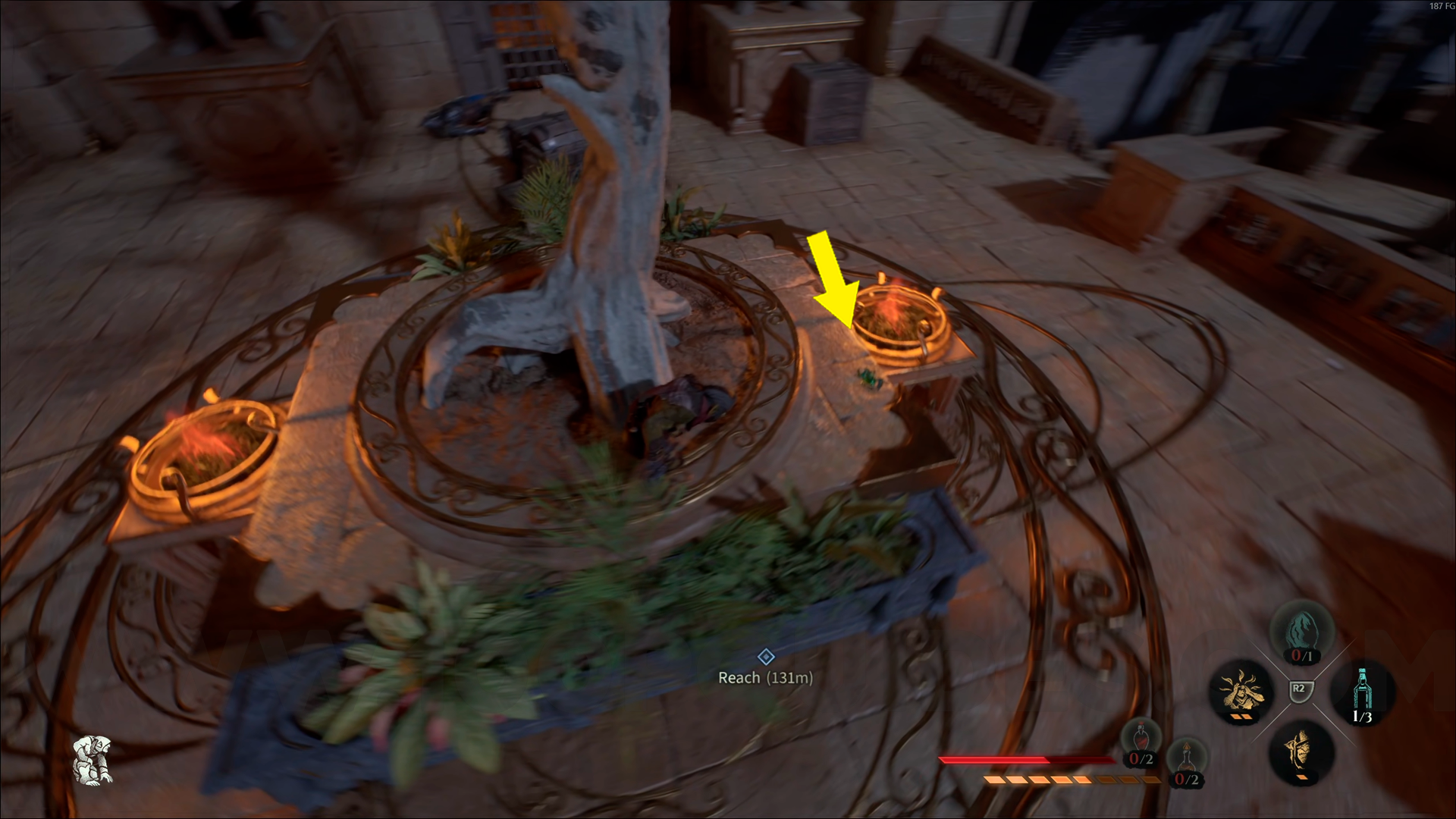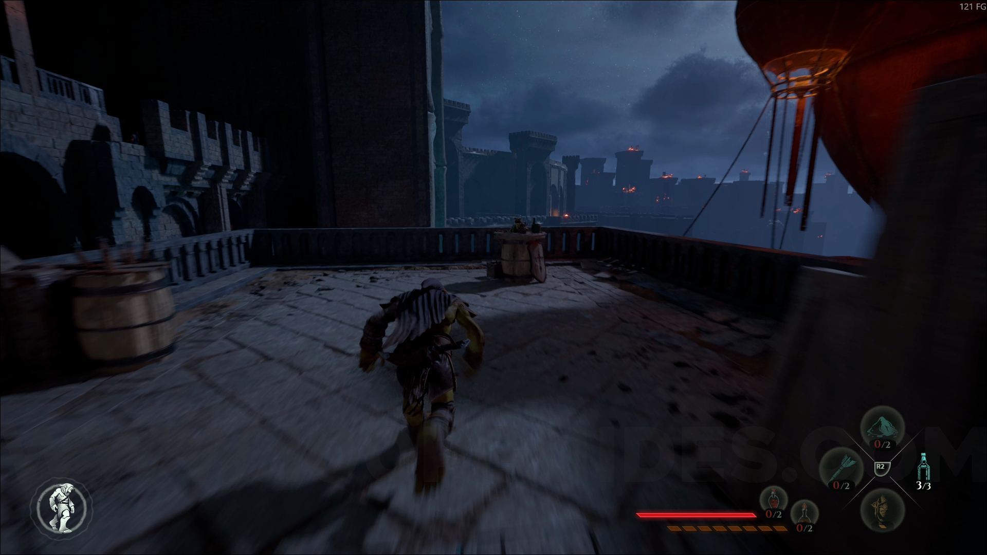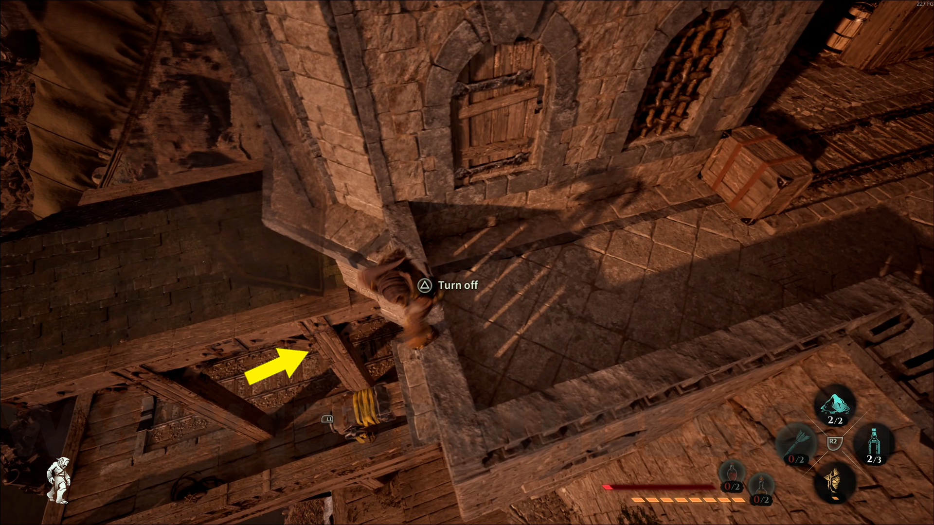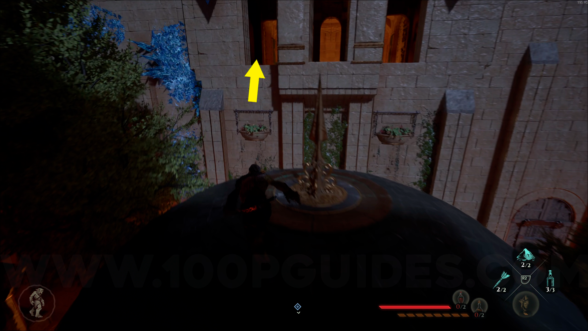 Gold Emblem #2. Right after the previous collectible, go back out through the door you entered and head to the building on your right. This emblem will be on the balcony of that building. Use Amber Vision to help you spot it.