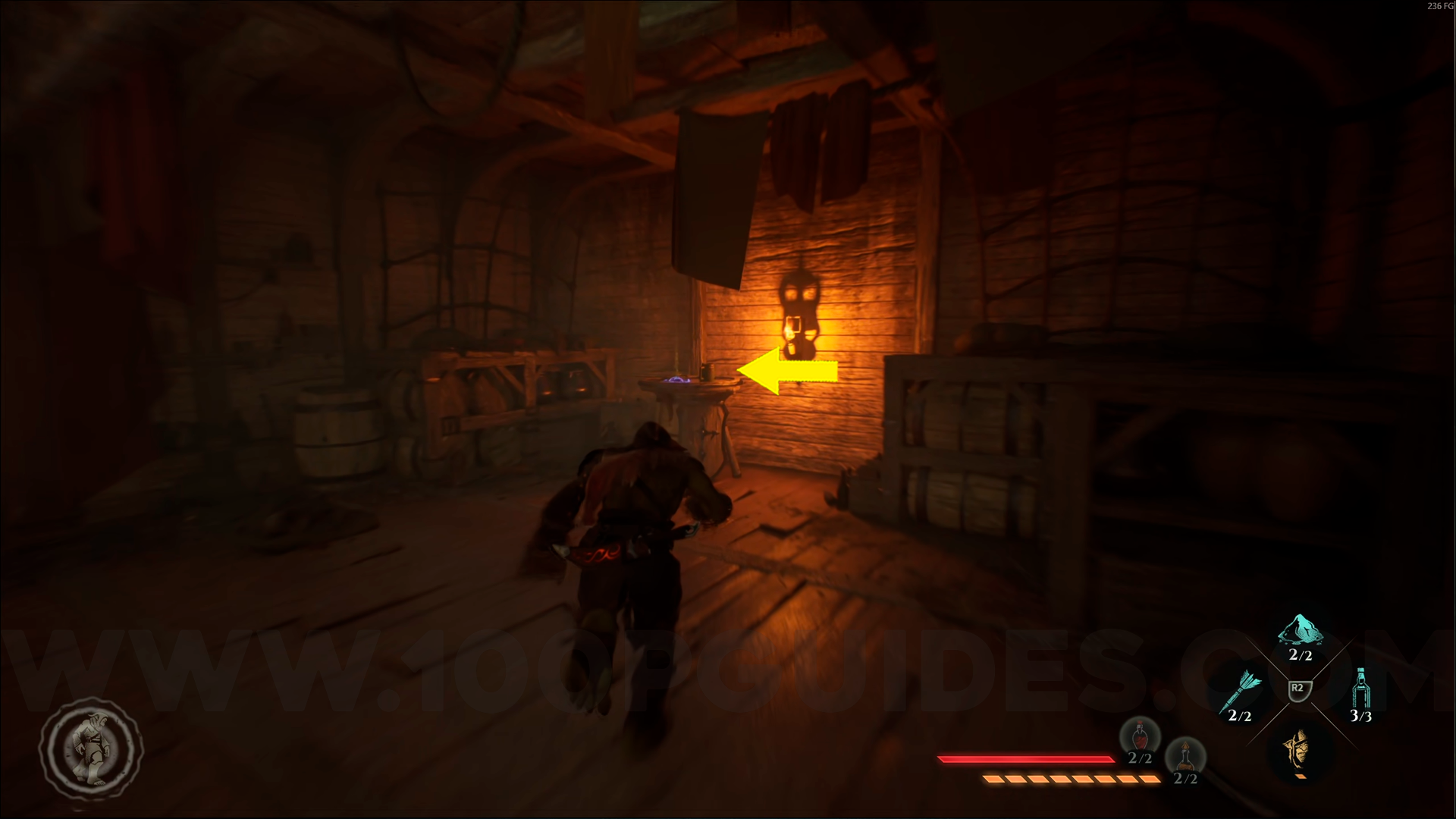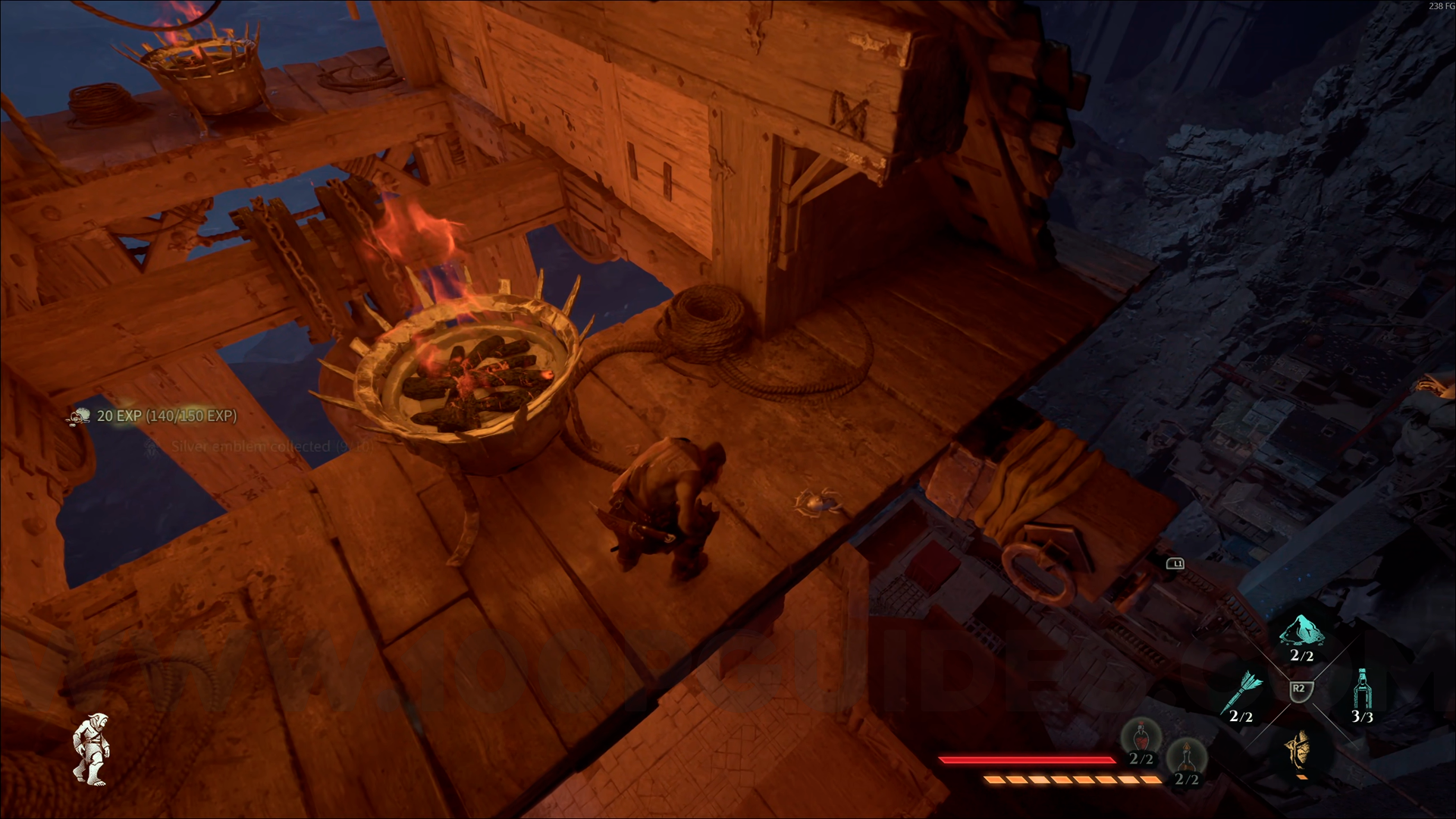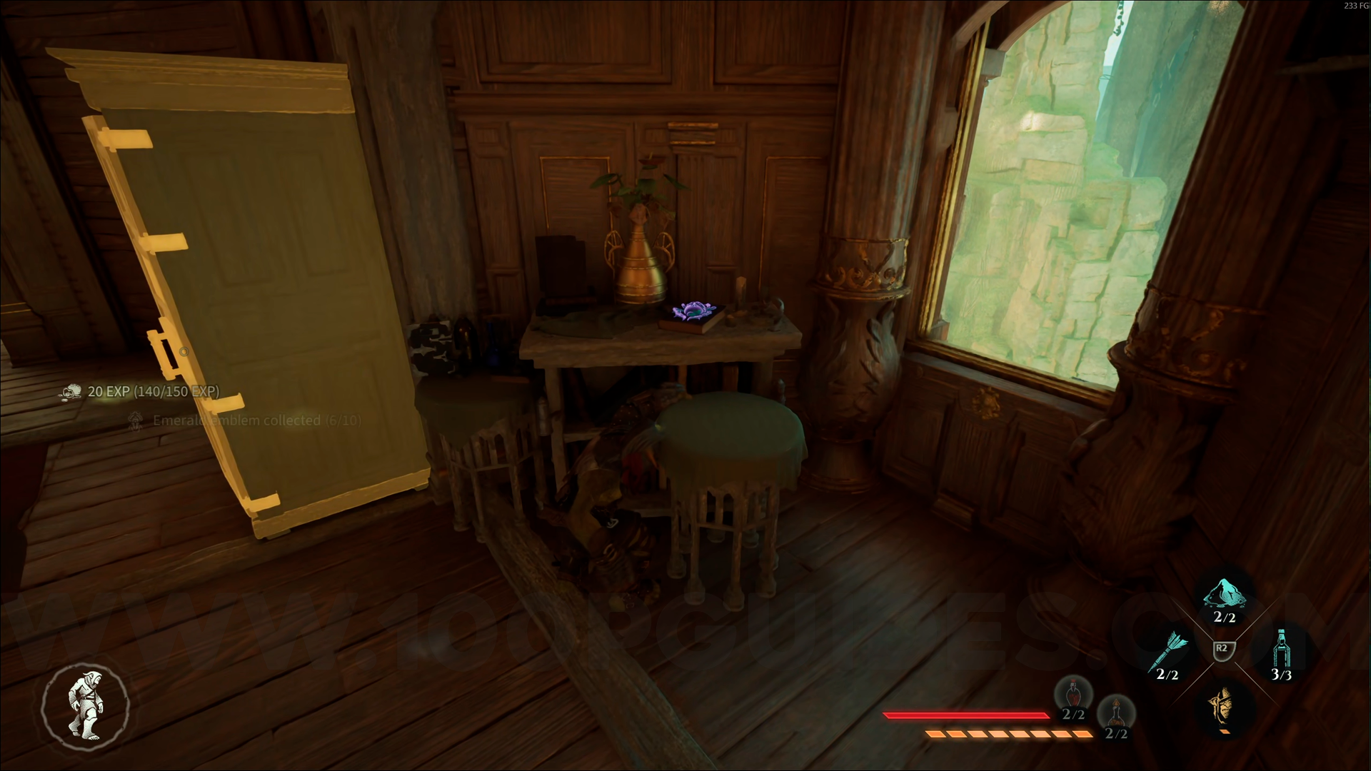 Wood Emblem #4. Right after the previous collectible, head to the structure at the back of the area and go through the hole in the wall. Then climb up the pillar, go through the door, and the emblem will be on the table in front of you.