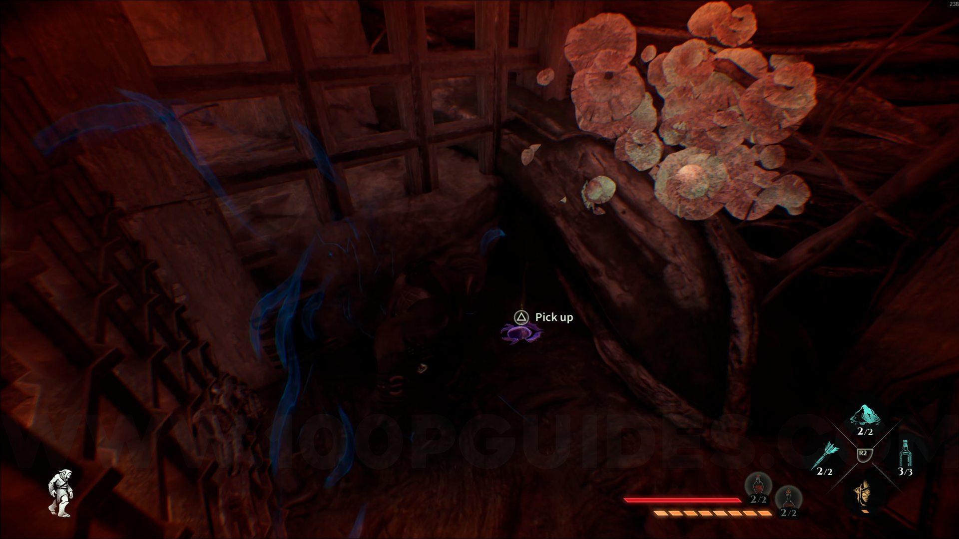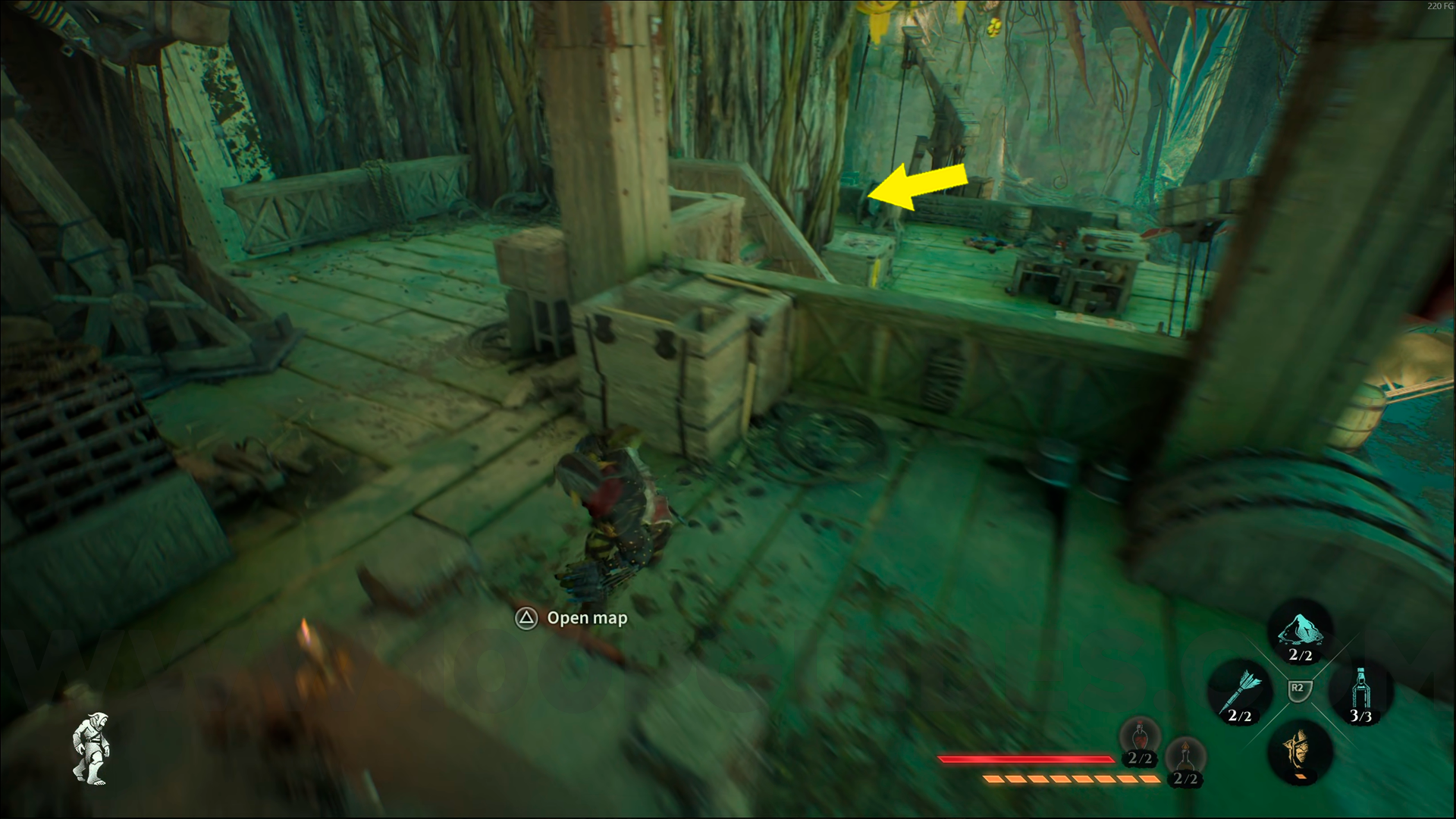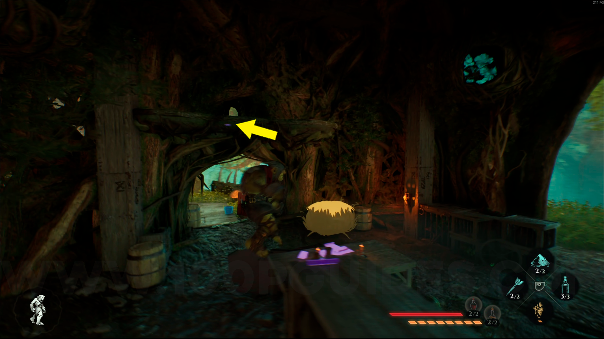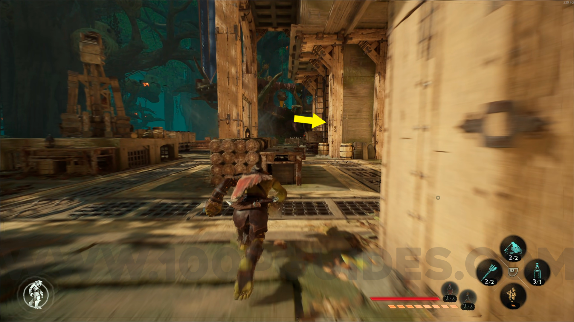 Wood Emblem #4. Right after the previous collectible, head to the structure at the back of the area and go through the hole in the wall. Then climb up the pillar, go through the door, and the emblem will be on the table in front of you.