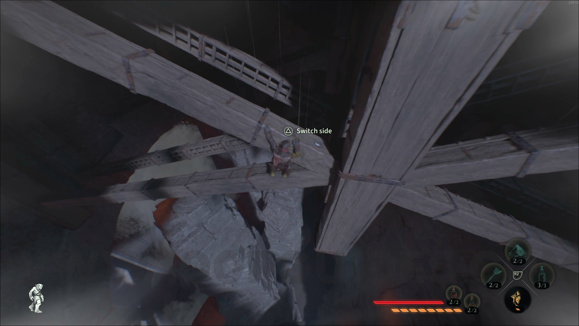 Silver Emblem #9. From the Broken Bridge Cave – Western Camp, go down to the lower area and enter the cave. Continue forward inside the cave. This emblem will be on top of a Grapple Hook point.