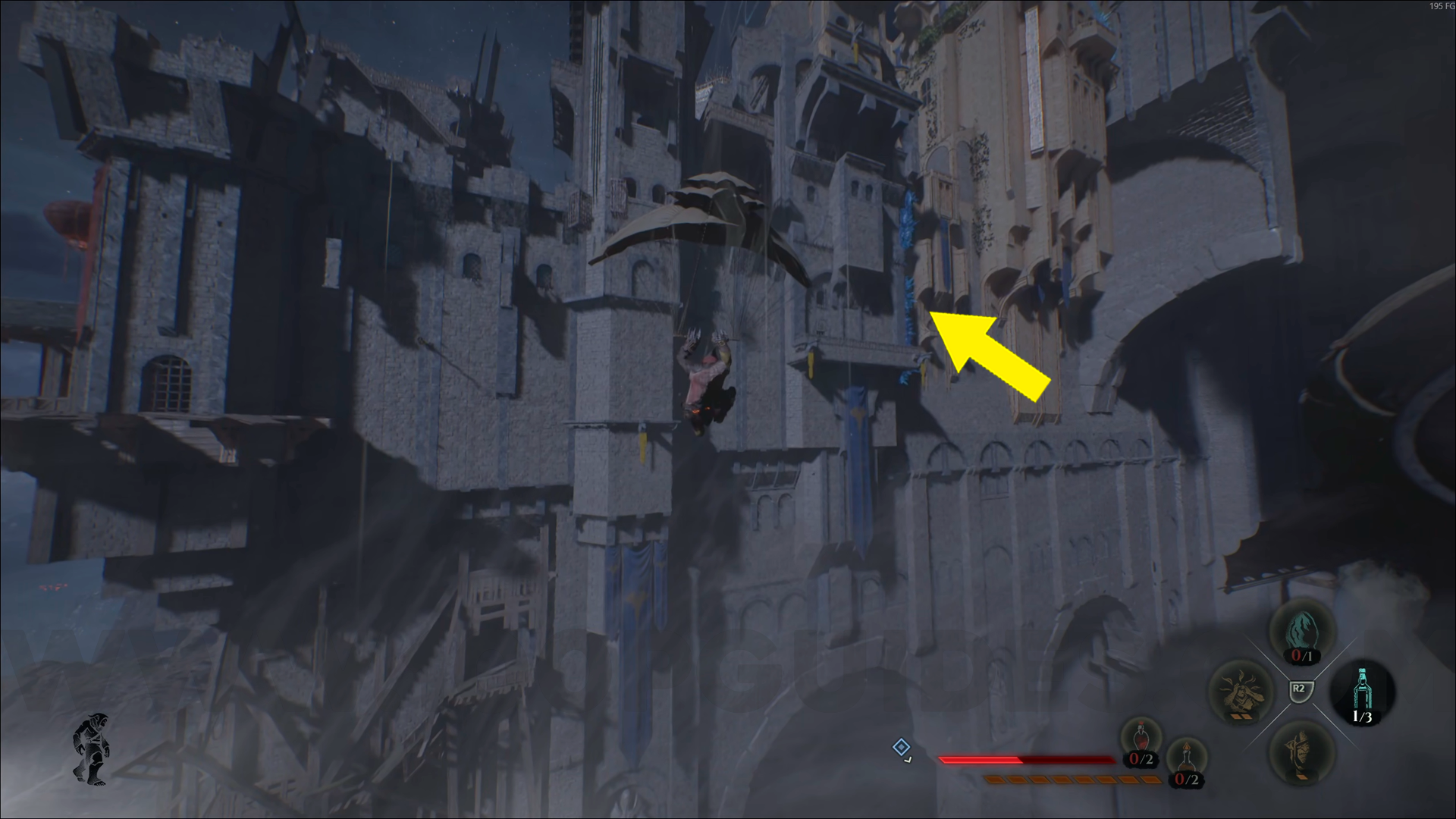 Silver Emblem #1. From the Zeppelins' Docks checkpoint, float through the wind current on your left side. Use Amber Vision to spot this emblem on the wall.