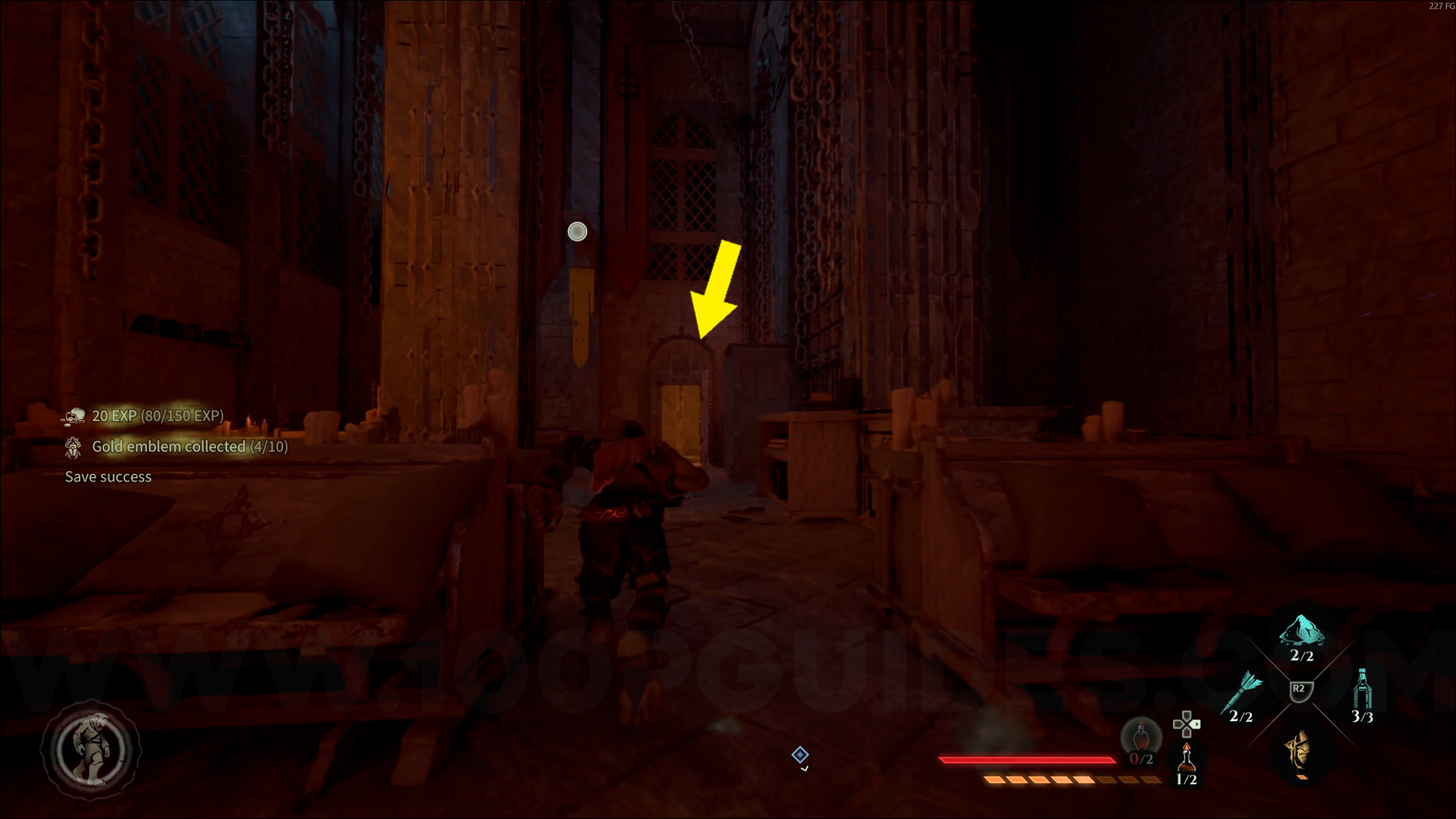 Gold Emblem #6. Right after the previous collectible, you'll notice a house at the end of this area, head over to it, and there will be another emblem inside.