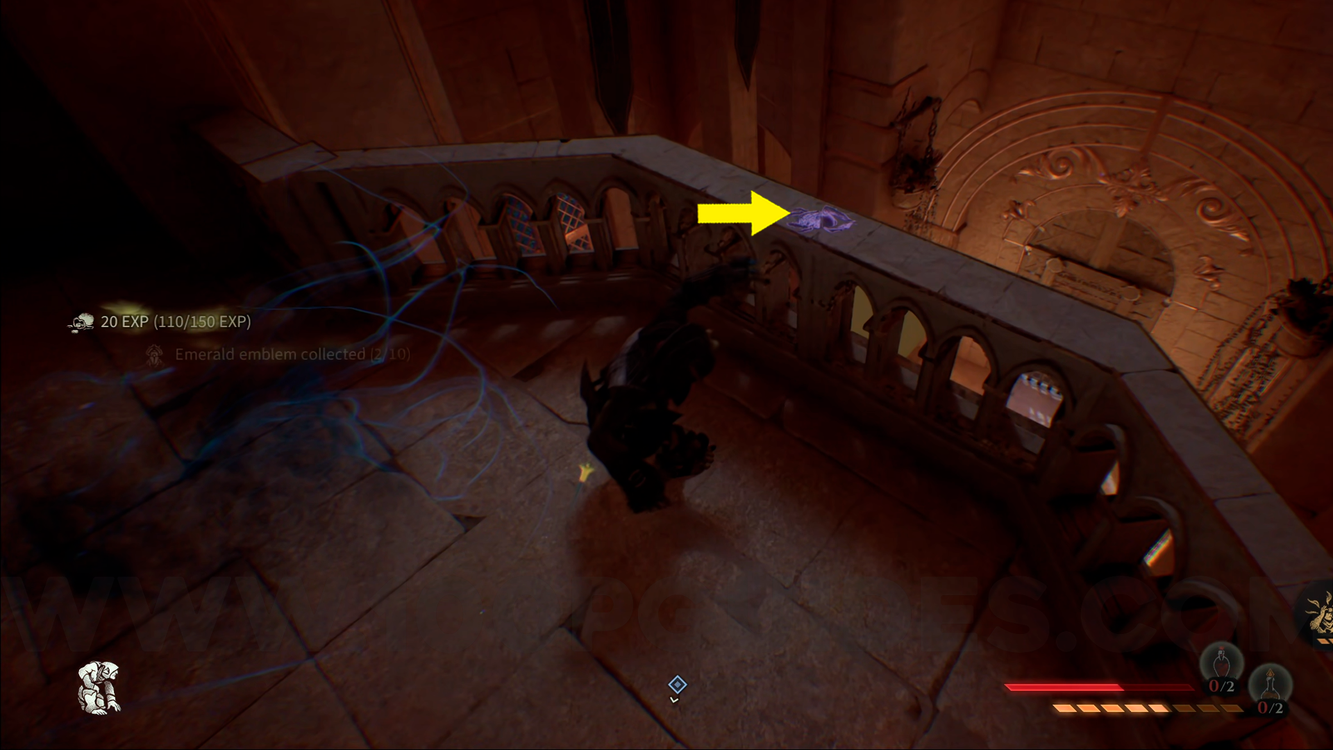 Gold Emblem #4. From Inquisition's Cathedral, go through the gate in front of you using your ability and head into the open area. Go up the stairs and enter the first door on your left. Climb all the way to the top using the stairs inside. Once you're at the top, you'll find this emblem. Use Amber Vision to help you spot it when you enter the room.