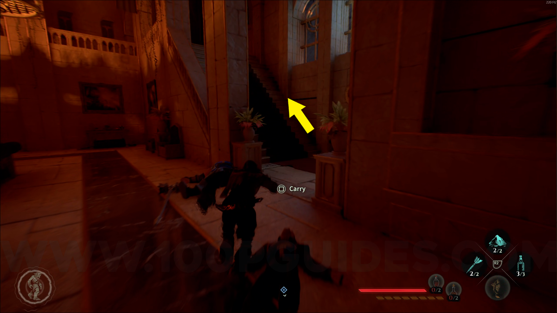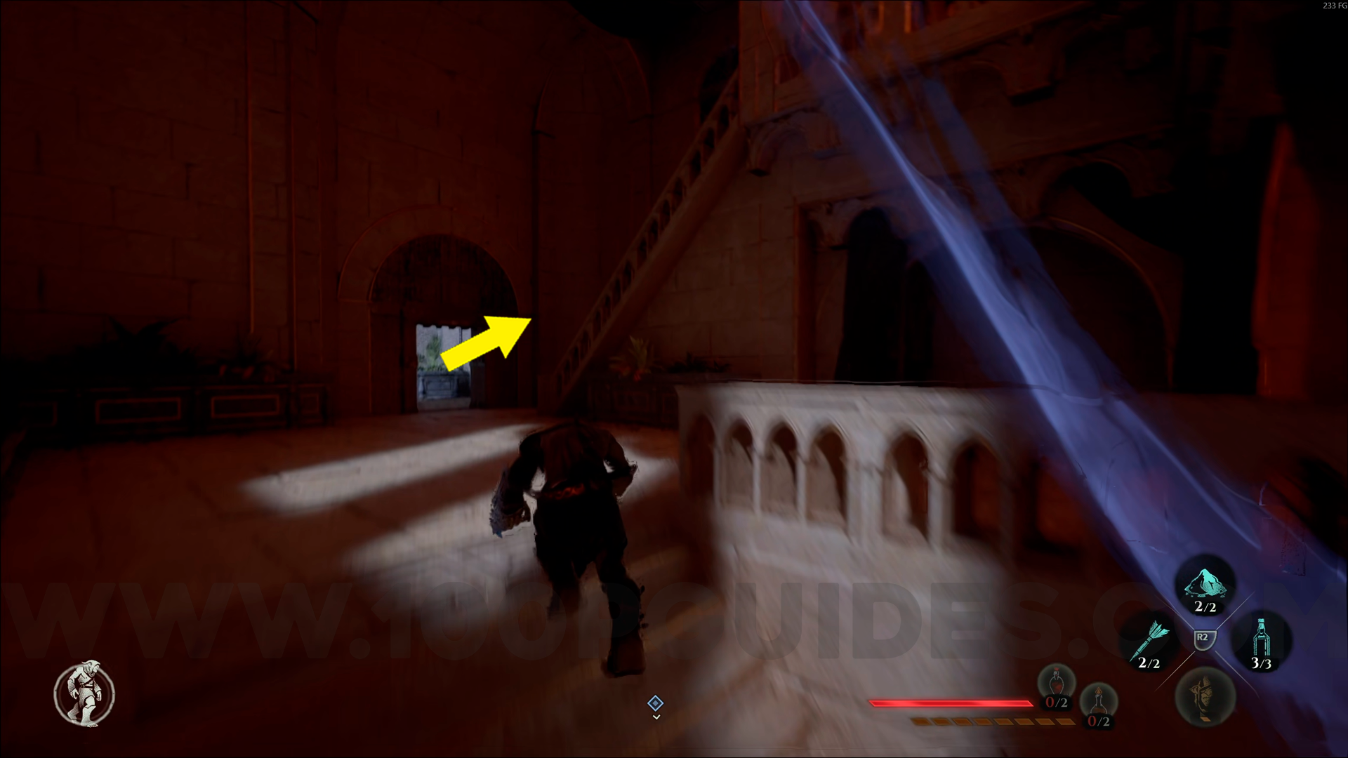 Look to the right, and you'll see a window. Go through it, then enter the first room on the right to find this emblem on top of the table. You can also use Amber Vision to spot the emblem through walls and help guide you.