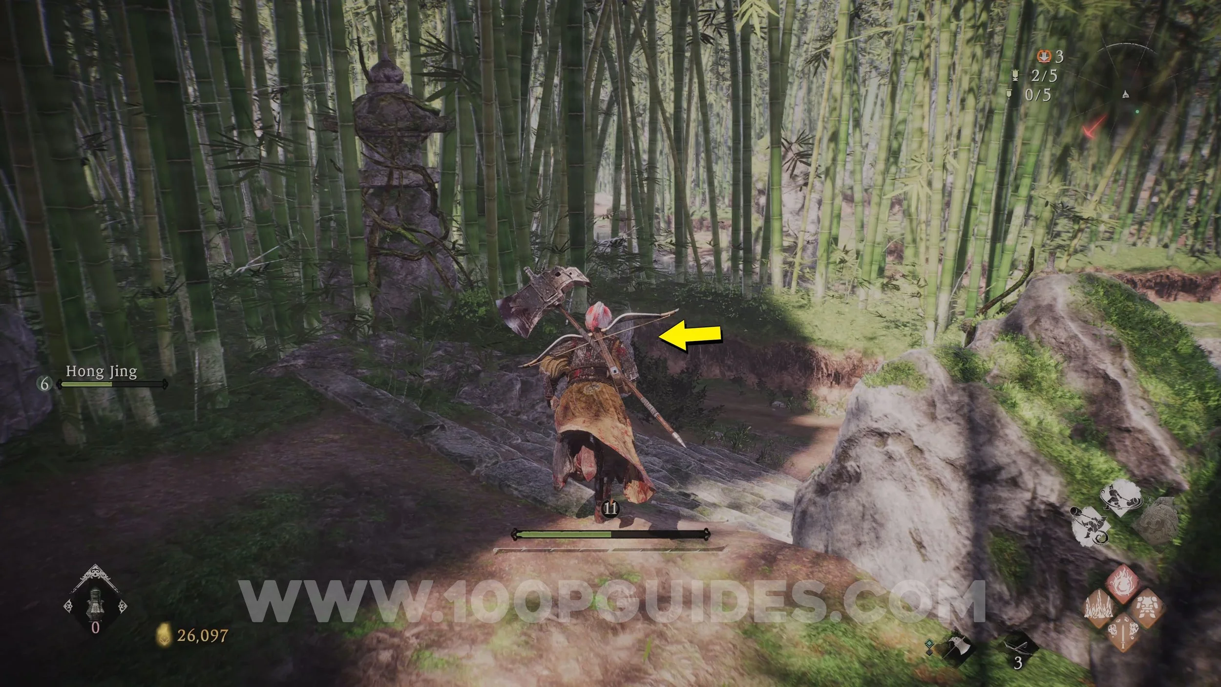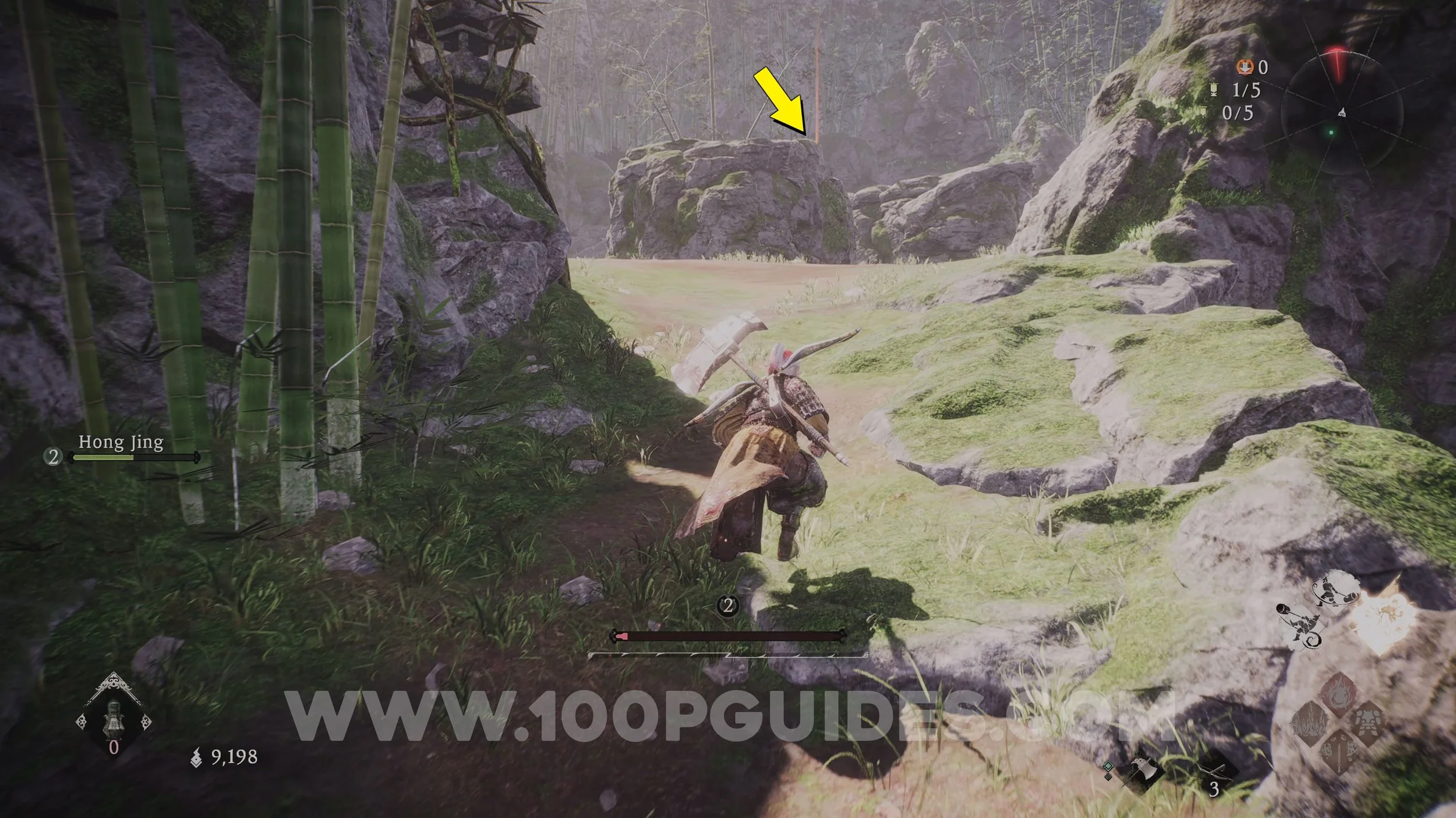 Marking Flag #3. Head back to the pagoda. Then, go behind it and take the path on the left to find the flag.