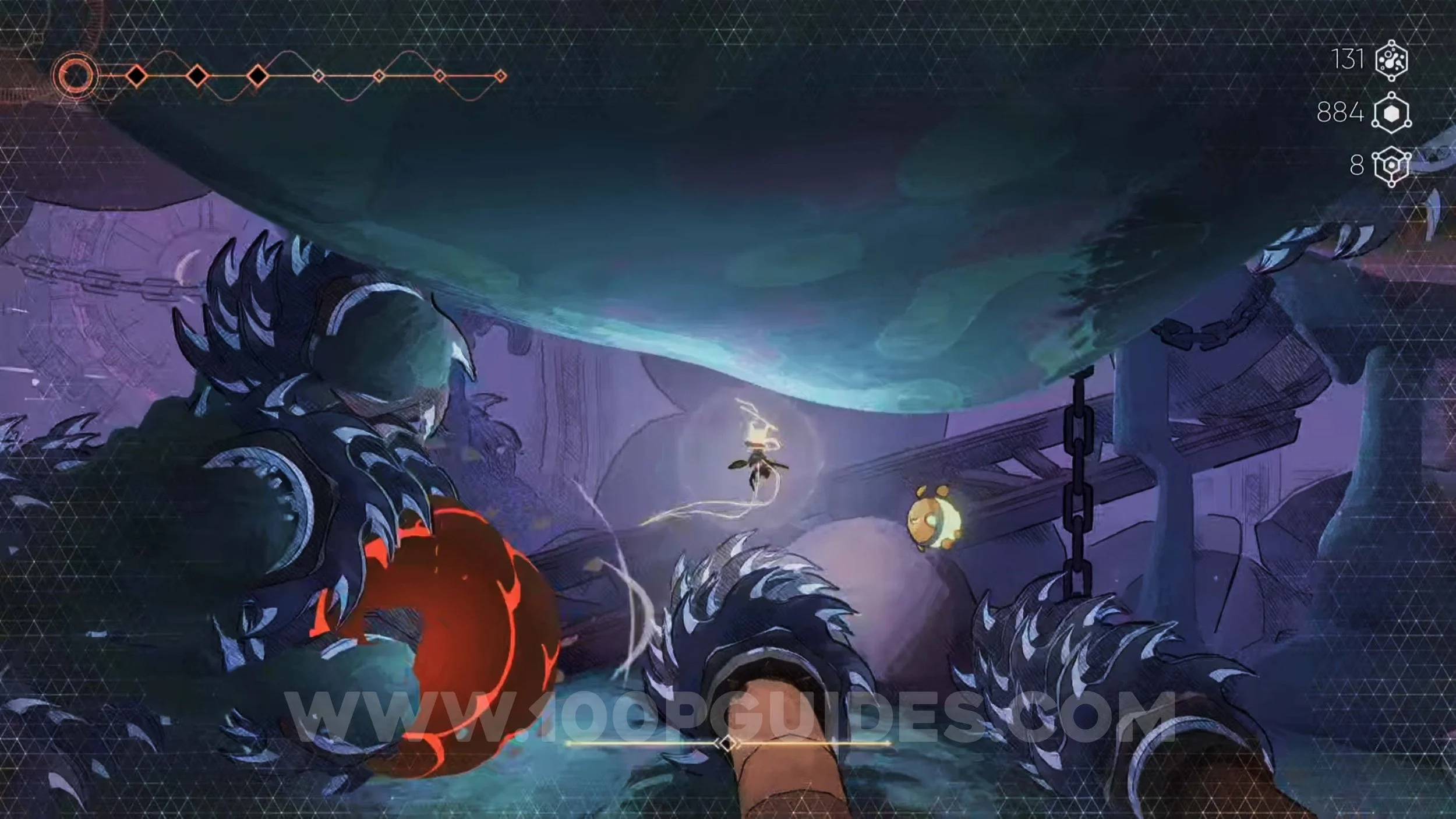 The Sentient Pearltrap is an optional boss that can be found in the Silo area.